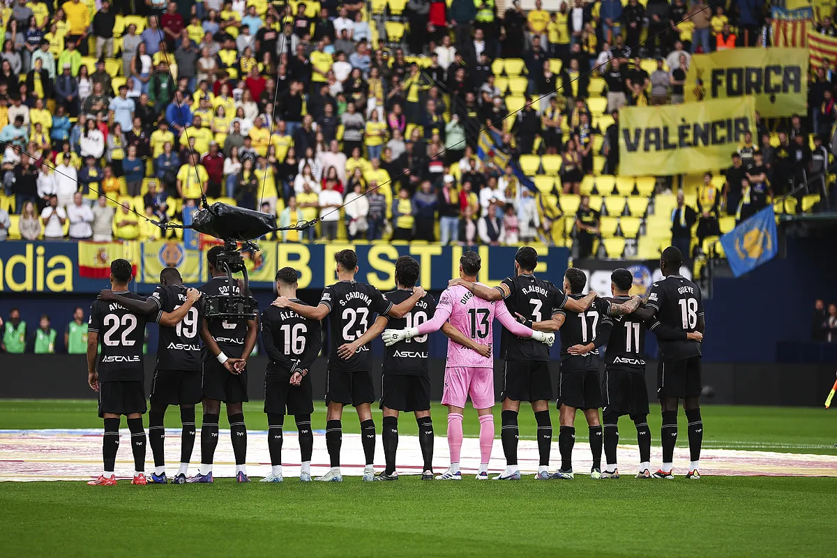 Todos de negro y enorme carga emotiva en el csped y en la grada de La Cermica. El Villarreal, tras el partido aplazado en la anterior jornada, regres a la actividad de la liga con un homenaje a los damnificados por la maldita riada. Este sbado, el equipo castellonense, en su cita ante el Alavs (finaliz 3-0, con goles de Ilias Akhomach, Comesaa y Dani Parejo, de penalti) prescindi de su habitual uniforme para presentar una vestimenta de luto. En el prembulo del encuentro, ambos conjuntos exhibieron durante unos minutos camisetas (amarillas el equipo local y blancas, los visitantes) con un lazo negro y el mensaje Fora Valncia. Los jugadores posaron entrelazados en un minuto de silencio que termin con aplausos y lgrimas de espectadores, jugadores y entrenadores. Todos profundamente conmovidos al escuchar el himno de la Comunidad Valenciana.