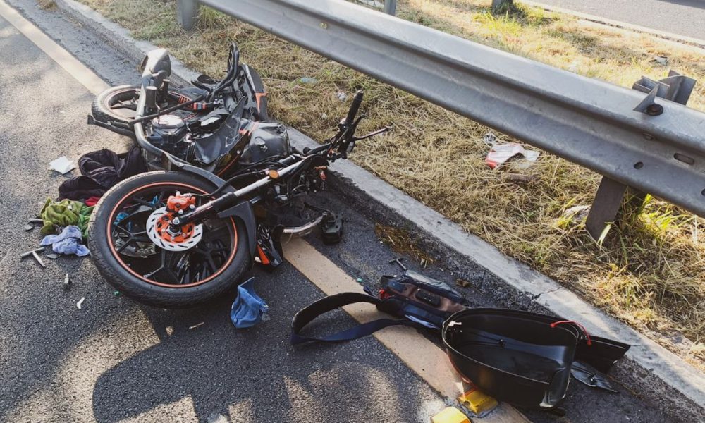 Elementos estatales abanderaron y delegaron las diligencias para deslindar responsabilidades por los daños materiales presentados, principalmente en la motocicleta, la cual fue proyectada contra el muro de contención.