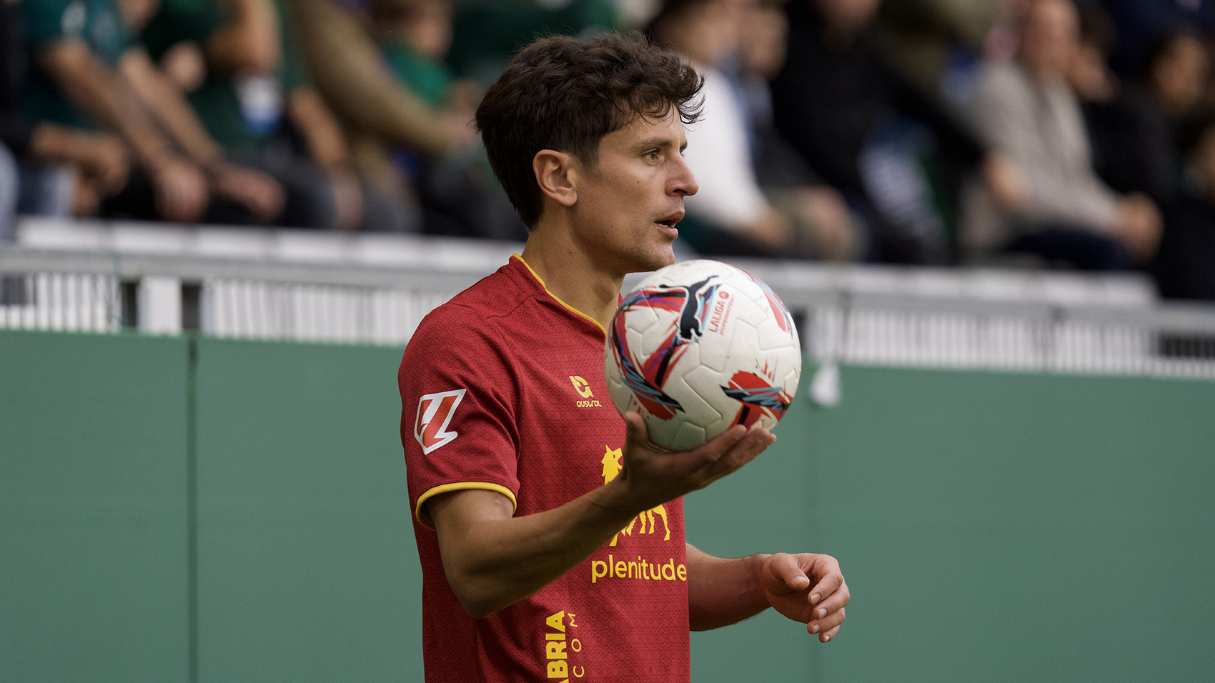 Sangalli, a punto de realizar un saque de banda.Racing de Santander