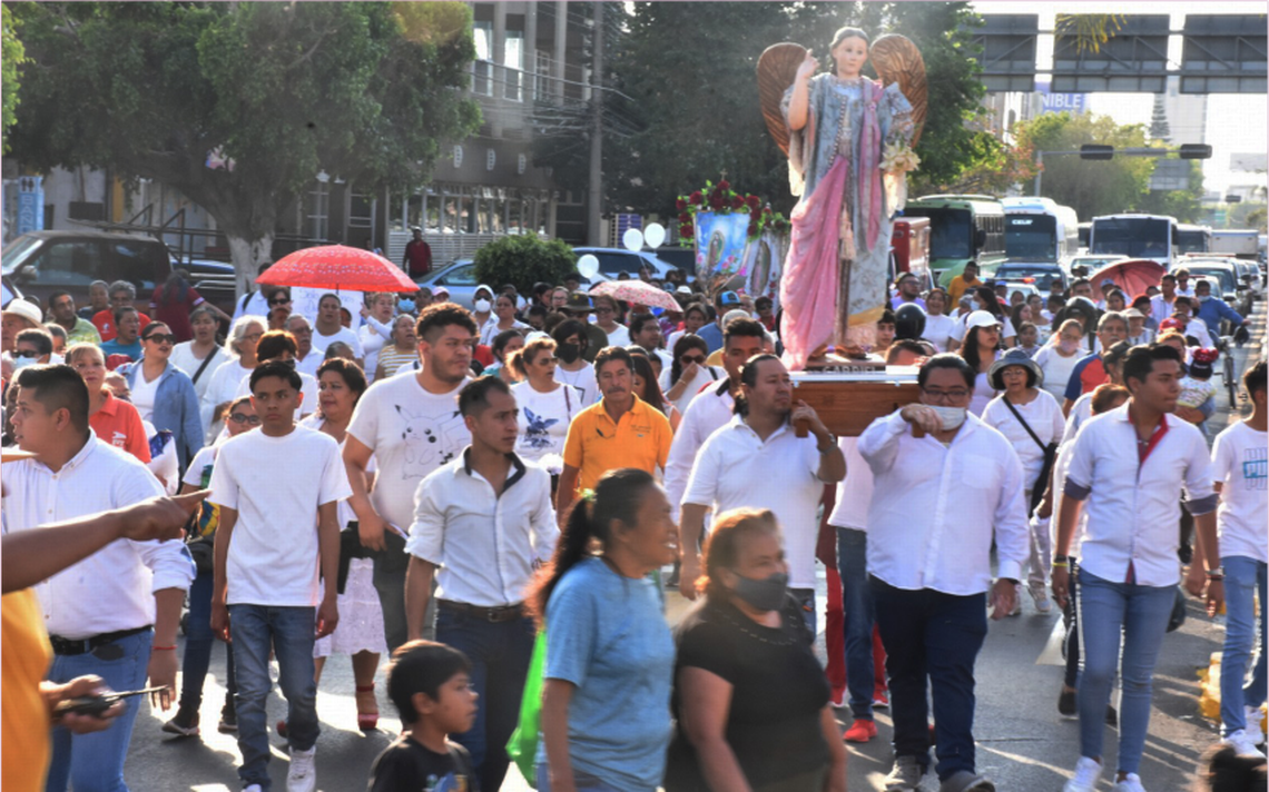 Con el Santísimo Sacramento en lo alto, así como con los tres Arcángeles, decenas de feligreses se integraron en el contingente avanzando entre cánticos y oraciones, además de exclamaciones de paz en las que se invitaba a unirse a la iglesia y buscar a Cristo.