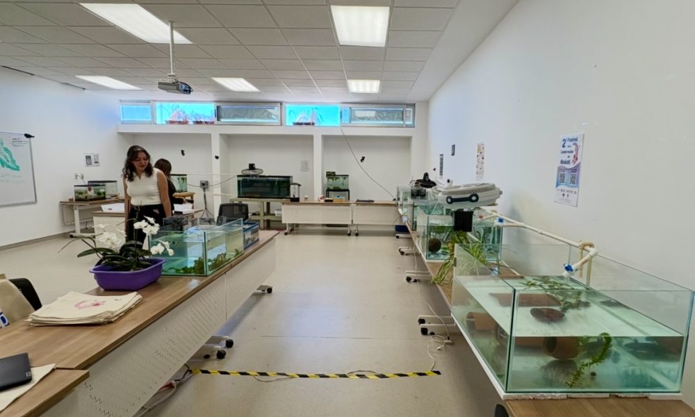 “Una pecera de estas dimensiones, 80 por 70 por 60 nos cuesta como mil 500; el filtro está en 800, tenemos ventiladores porque tienen que estar a temperaturas por debajo de los 18 grados. En ese caso, los ventiladores nos cuestan 700 pesos”, detalló Tania Gómez.