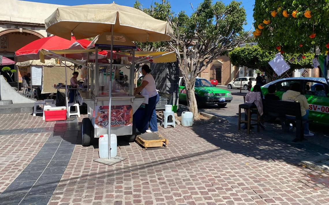 Por las obras de remodelación que se hicieron en la explanada, tanto los taxistas como los comerciantes de alimentos fueron reubicados, en ocasiones en la calle Juárez y en otras en la calle Zaragoza, sobre el arroyo vehicular.