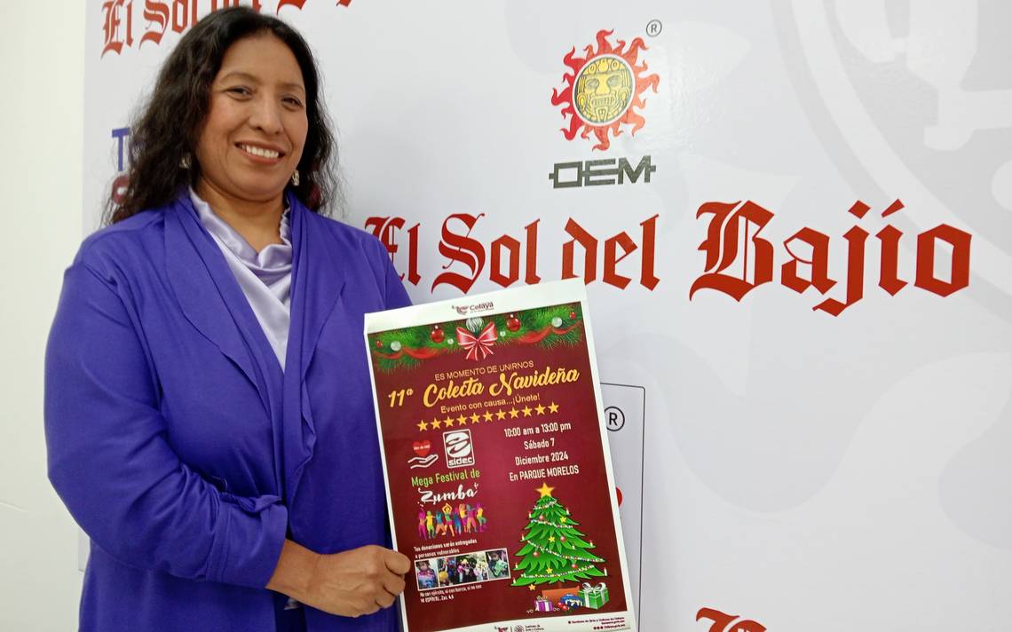 Celaya, Gto.- María Guadalupe Ramírez Zapatero, del colectivo “Río de Luz”, hace una invitación a las personas para que participen y a la vez ayuden a quienes más lo necesitan, en lo que será la 11va “Colecta Navideña”, realizando el Mega Festival de Zumba el sábado 07 de diciembre por la mañana.