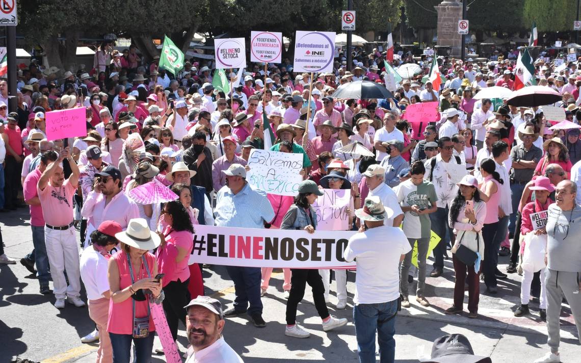 CELAYA, Gto. (OEM-Informex).- Al grito de “el INE No Se Toca”, más de mil personas marcharon y se manifestaron en Celaya, en defensa del Instituto Nacional Electoral (INE) y en contra del Plan B de la Reforma electoral aprobada en la Cámara de Diputados por Morena y sus aliados, que atenta contra la democracia en el país.