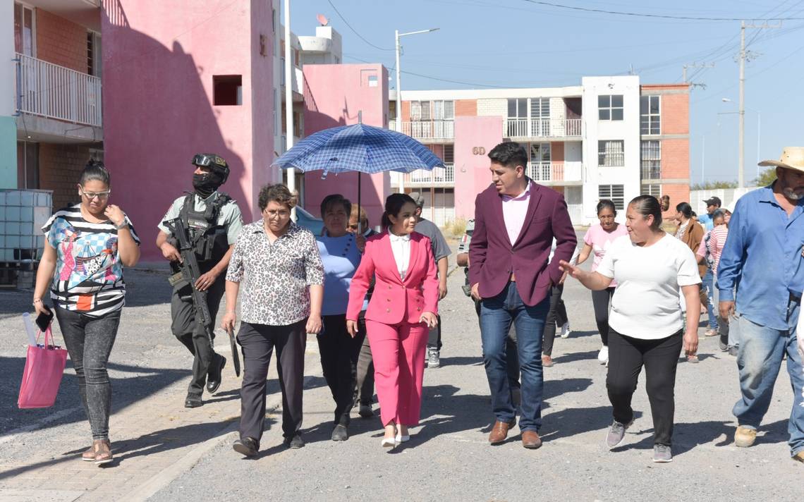 Los vecinos de la sección Arco Iris de dicho asentamiento poblacional, mostraron a la alcaldesa y al senador los daños que presentan los edificios y departamentos en los que viven con el riesgo latente de que se caigan en cualquier momento.