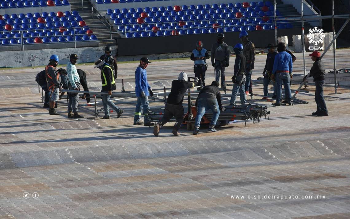 En un recorrido al interior del Estadio Sergio León Chávez se observó que todo sigue en pie y siguen con el armado de escenario y audio para la presentación de Luis Miguel en Irapuato.