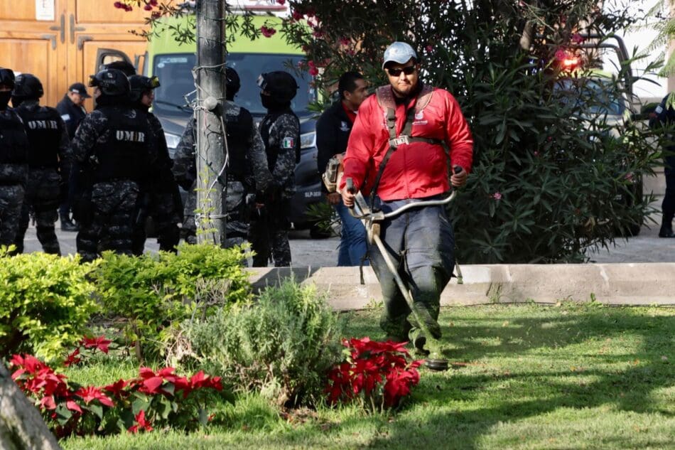 La tarea está a cargo de las direcciones de Servicios Municipales con las áreas de Imagen Urbana, Parques y Jardines y Alumbrado Público; Unidad de Gestión del Centro Histórico; Gestión Ecológica y Manejo de Residuos, y la Secretaría de Seguridad y Protección Ciudadana. A la jornada se suman trabajadoras y trabajadores del Ayuntamiento que contribuyen a mantener limpia y bella la ciudad.