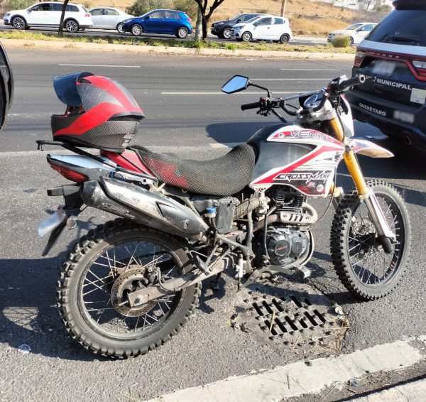 Hombre que circulaba a bordo de una motocicleta implicada en un robo a comercio, fue detenido sobre la avenida Constituyentes, a la altura de la zona residencial de Milenio III, en el municipio de Querétaro.
