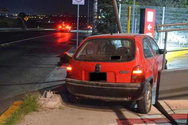 En los primeros minutos de hoy un automóvil particular quedó impactado contra el poste metálico de una luminaria y abandonado por su conductor, en el anillo vial Fray Junípero Serra, a la altura del fraccionamiento El Refugio.