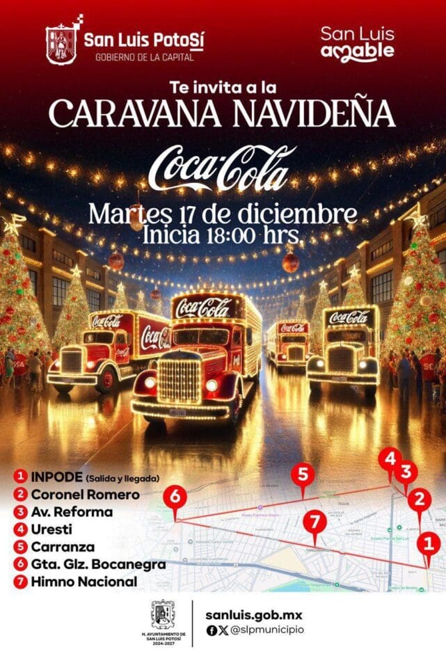 Como parte de los atractivos de la temporada, el Gobierno de la Capital invita a la población a presenciar la tradicional Caravana Navideña Coca Cola, evento que se suma al exitoso carrusel instalado en la Plaza del Carmen, al espectacular alumbrado del Centro Histórico, al pino en la Plaza de Armas y al Nacimiento que adorna el patio del Centro Cultural Palacio Municipal.
