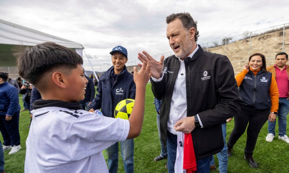 El gobernador, Mauricio Kuri González, encabezó en la comunidad El Portugués, la entrega de una cancha de fútbol 7, obra que promueve estilos de vida saludables así como la recuperación de espacios para convivencia social, y que beneficia a 19 mil habitantes del municipio de Peñamiller.