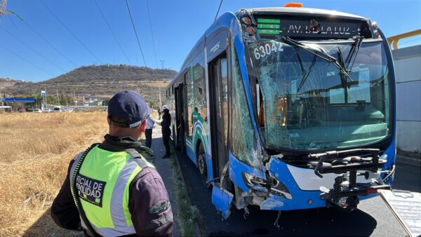 Tres personas fueron valoradas por los servicios de emergencias, luego de que una unidad de transporte público Qrobús, protagonizara un aparatoso accidente sobre el circuito Cerro del Tambor, en la capital queretana.
