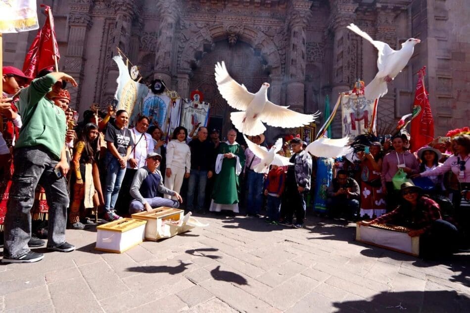 Este domingo se inauguró el Sexto Festival Nacional de Danza Tradicional Saucito Primer Viento en San Luis Potosí Capital, un evento que fortalece las tradiciones, la identidad y la cultura de nuestra ciudad, además de promover el turismo religioso, reuniendo a más de dos mil danzantes de 50 agrupaciones provenientes de distintos municipios potosinos como Mexquitic, Ahualulco, Moctezuma, Charcas y Venado, así como de los estados de Guanajuato, Zacatecas, Durango y Jalisco. El contingente partió de la Plaza del Carmen y llegó al templo del Saucito.