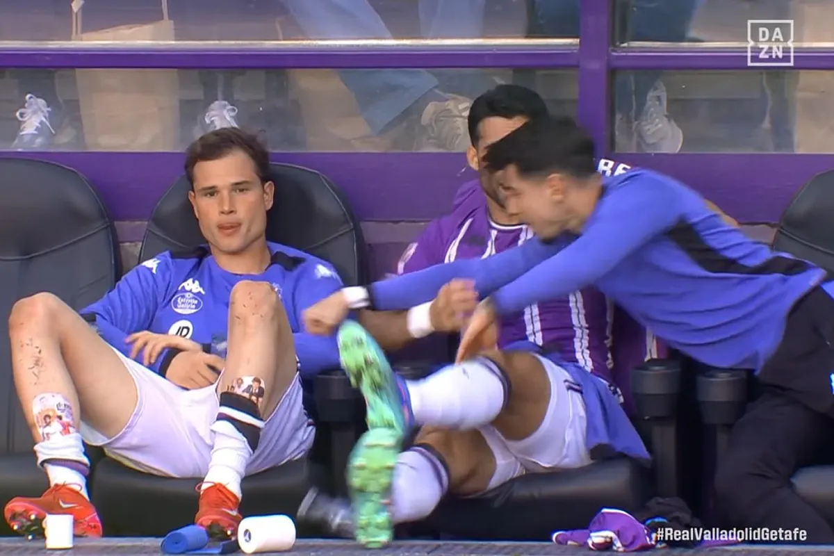 Una de las imgenes de este fin de semana fue la del encontronazo entre Juanmi Latasa y Luis Prez dos jugadores del Valladolid que en pleno partido contra el Getafe, sentados en el banquillo, tuvieron una disputa que casi llega a las manos sino interviene un compaero que se situaba entre ambos.