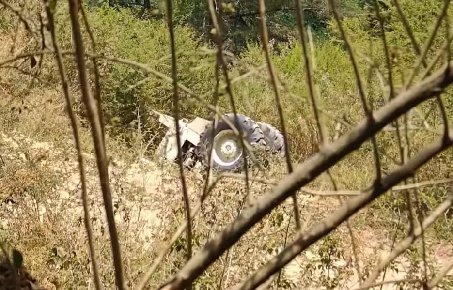carretera de terracería La Colgada-Las Guayabas, volcó una máquina