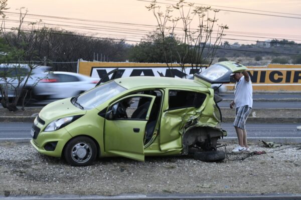 Aparatoso choque entre dos automóviles, originó que uno de ellos fuera