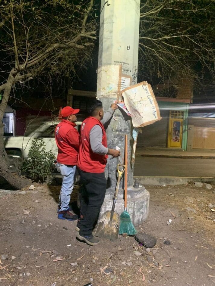 En horario nocturno para no afectar las actividades ni obstruir el tránsito vehicular, se hizo limpieza a fondo al atrio de El Saucito y en la Avenida Salk, de donde también se retiró publicidad no autorizada.