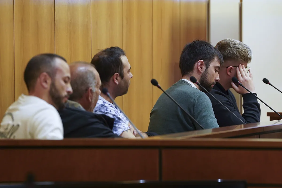Los hechos constituyen cinco delitos de odio y contra la discriminacin, por lo que cada encausado ha sido condenado a un ao de prisin. Adems, cuatro de los cinco procesados debern abonar una multa de nueve meses a razn de seis euros diarios -1.620 euros-, y el quinto una multa de nueve meses a razn de cuatro euros -1.080 euros-.