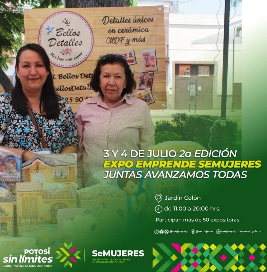 La Secretaría de las Mujeres e Igualdad Sustantiva (Semujeres) realizará la segunda “Expo Emprende: Juntas avanzamos todas” el próximo jueves 3 y viernes 4 de julio de las 11:00 a las 20:00 horas en la explanada del Jardín Colón donde participaran más de 50 emprendedoras.