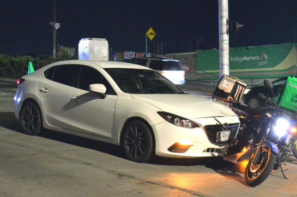 La colisión se produjo al momento en que el tripulante de la motocicleta (repartidor por aplicación), circulaba en dirección de sur a norte sobre la mencionada arteria y detenía la marcha al llegar a la intersección con la calle Azabache, por la luz roja del semáforo.