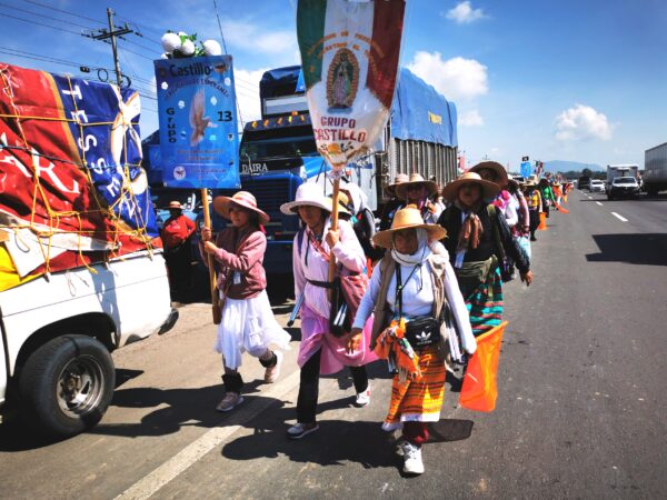 Así fue como entre terrenos lodosos e inestables, charcos y los rayos de sol penetrantes mezclados con el ambiente húmedo, las peregrinas celebraron su llegada a la caseta de Palmillas para continuar su recorrido por el Estado de México, espacio en el que autoridades estatales realizaron la entrega institucional del contingente a autoridades de aquella entidad.