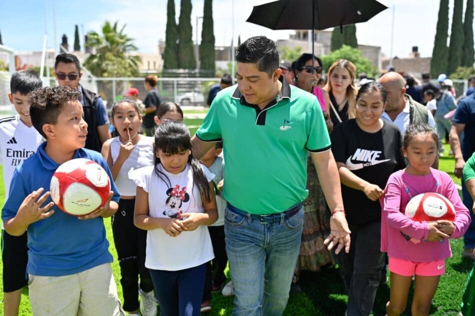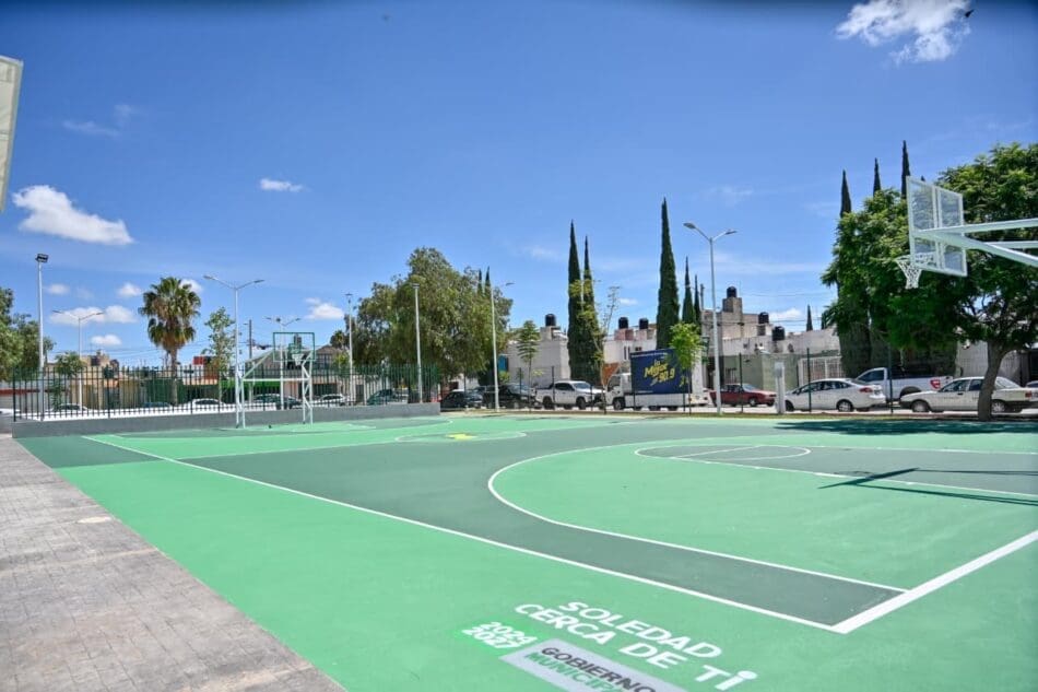Gallardo Cardona, acompañado del alcalde Juan Manuel Navarro Muñiz, destacó que su Gobierno impulsa un trabajo sin límites en cada rincón del Estado, trabajando de la mano con los municipios para rescatar espacios públicos, garantizar servicios esenciales y atender a la gente, por ello recordó que se impulsan 150 unidades deportivas en la zona metropolitana y se arrancará el Tangamanga 3 en Soledad.