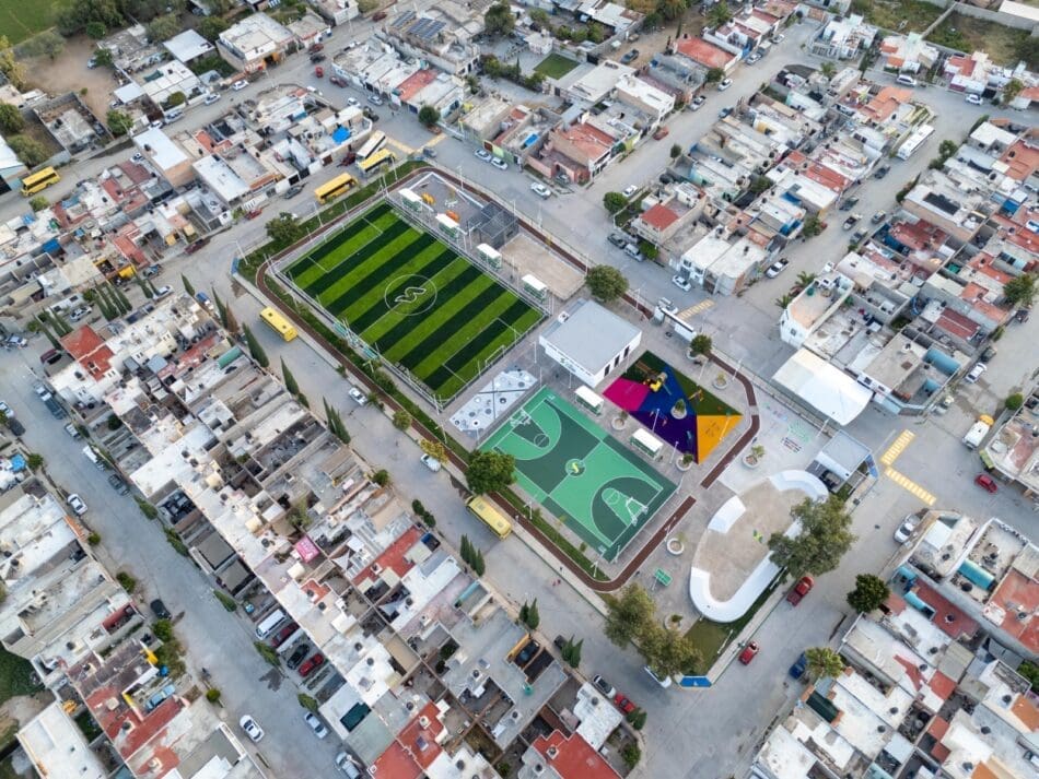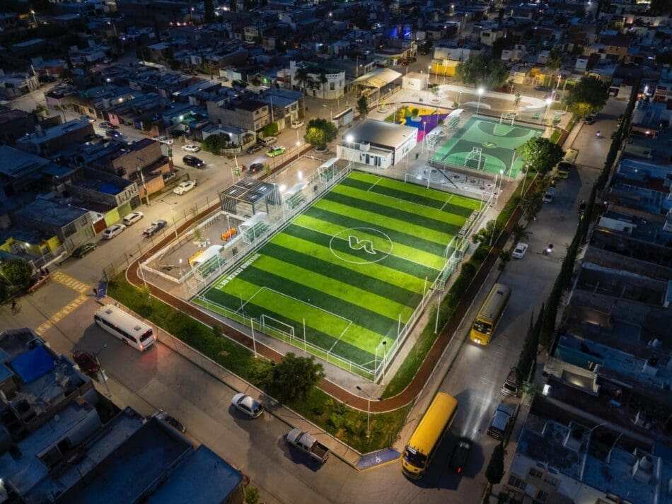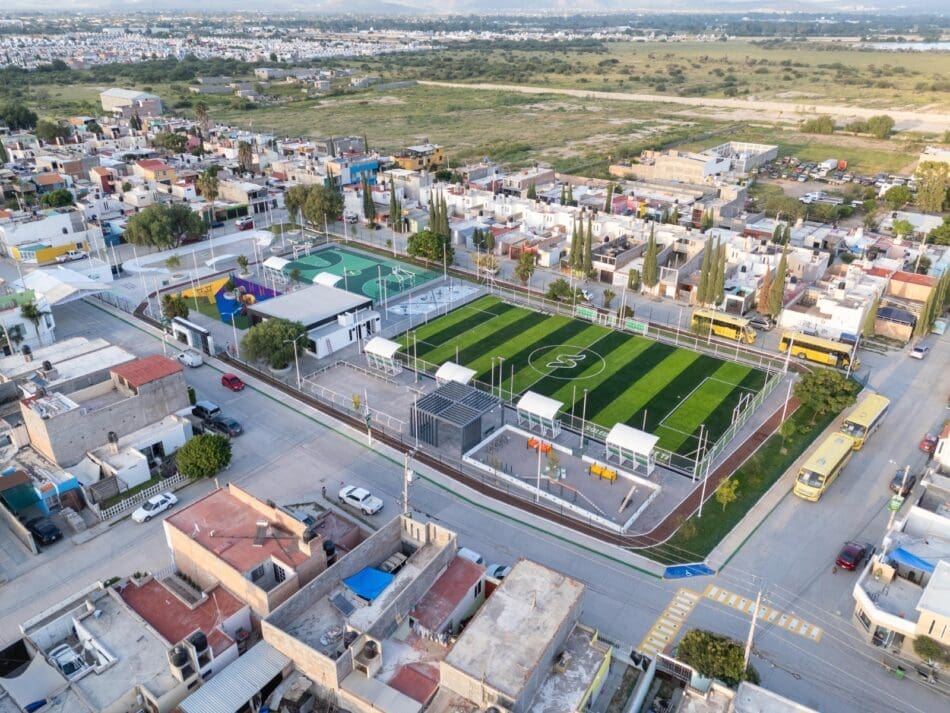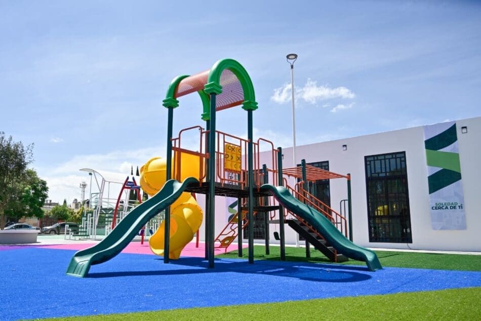 El Parque Urbano cuenta con cancha deportiva equipada con butacas, trotapista, juegos infantiles sobre pasto sintético, un módulo de usos múltiples y moderno sistema de iluminación LED y la integración de la purificadora gratuita atiende desde el primer día una necesidad básica de las y los soledenses con agua de calidad al alcance de todas y todos.