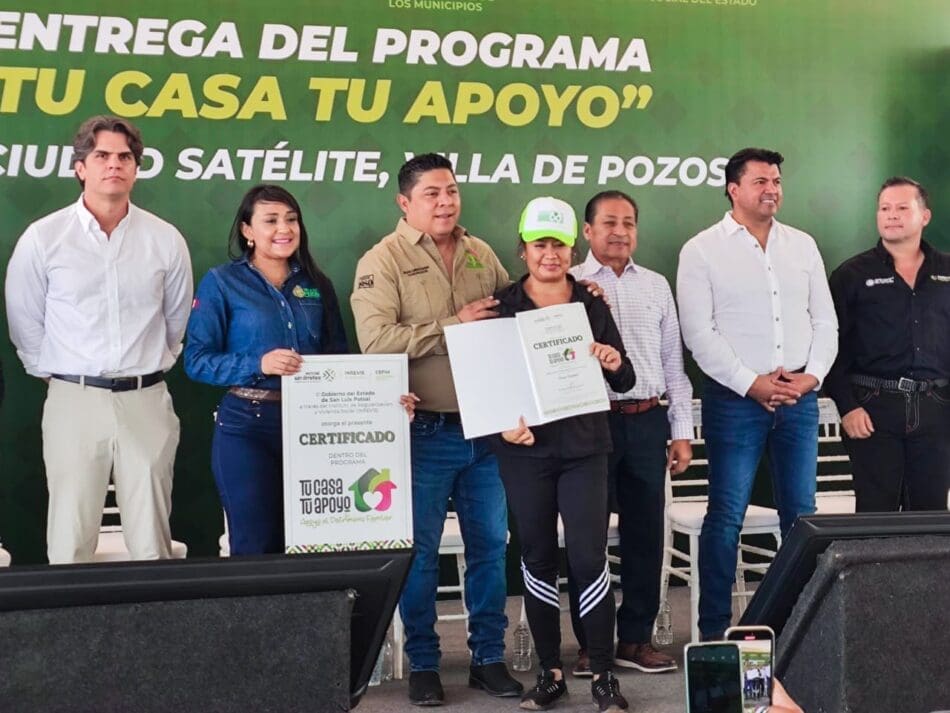 Con la asistencia de la concejal presidenta de Villa de Pozos Teresa de Jesús Rivera Acevedo, el Gobernador Ricardo Gallardo, dijo que además de un lote, en las próximas etapas se beneficiará con paquetes de materiales de construcción gratuitos, además de la certeza jurídica con escrituras, lo que generó un fuerte aplauso y la felicidad de las y los beneficiarios.