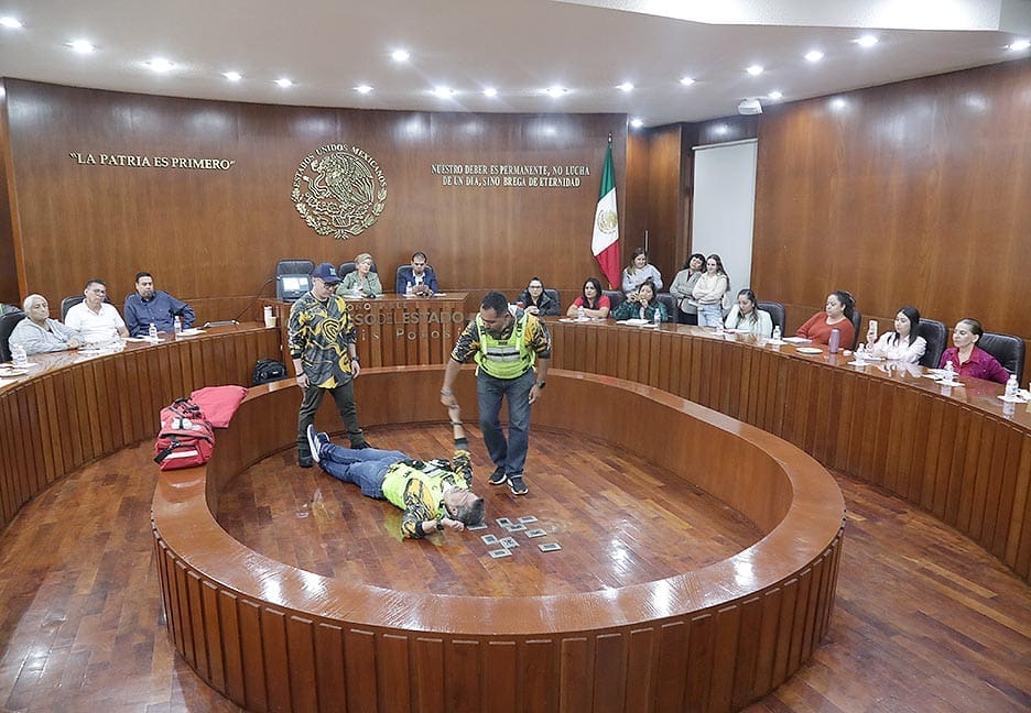 Con el propósito de que el personal del Congreso del Estado de San Luis Potosí, pueda brindar una respuesta inmediata y efectiva ante accidentes y emergencias médicas al interior de la institución, cuando así se requiera, se impartió un curso de capacitación que cuenta con varios conceptos de suma importancia.