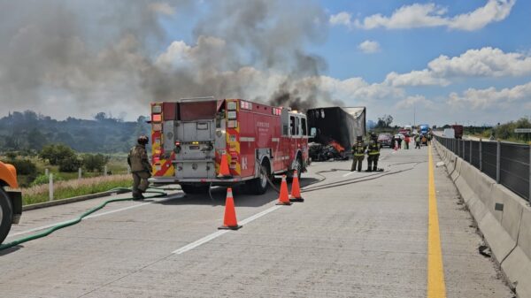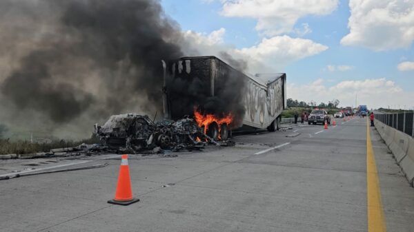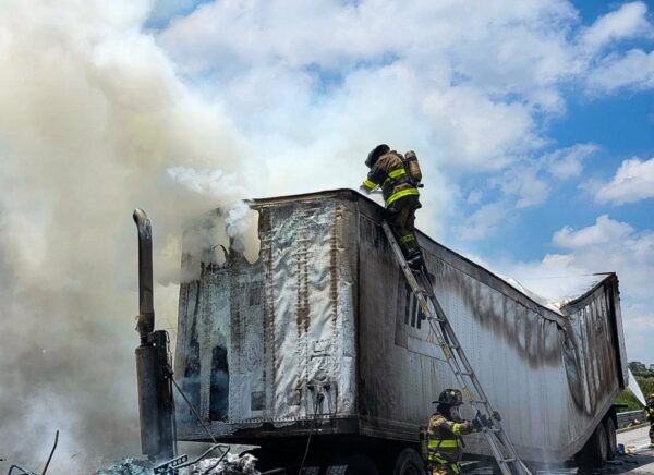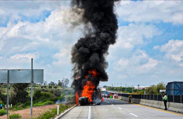 Se trató de un tracto marca Freightliner, color blanco, con placas de circulación para el servicio de carga, acoplado con una caja seca tipo termo, que transportaba veinte toneladas de cajas de cereales, el cual era conducido en dirección de sur a norte, cuando, por causas que se desconocen, repentinamente del motor empezó a salir humo y luego se propagó la lumbre, por lo que, como pudo, el consternado operador logró salirse al acotamiento y varó la pesada unidad, luego trató de desenganchar la caja, pero no pudo, ya que para ese momento fue envuelto en llamas, por lo que el operador solo buscó un lugar para ponerse a salvo.