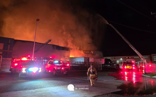 La madrugada de este sábado se registró una importante movilización de servicios de emergencias al interior del parque industrial Querétaro, en la capital queretana, en donde se registró un voraz incendio que afectó una fábrica de cartón.