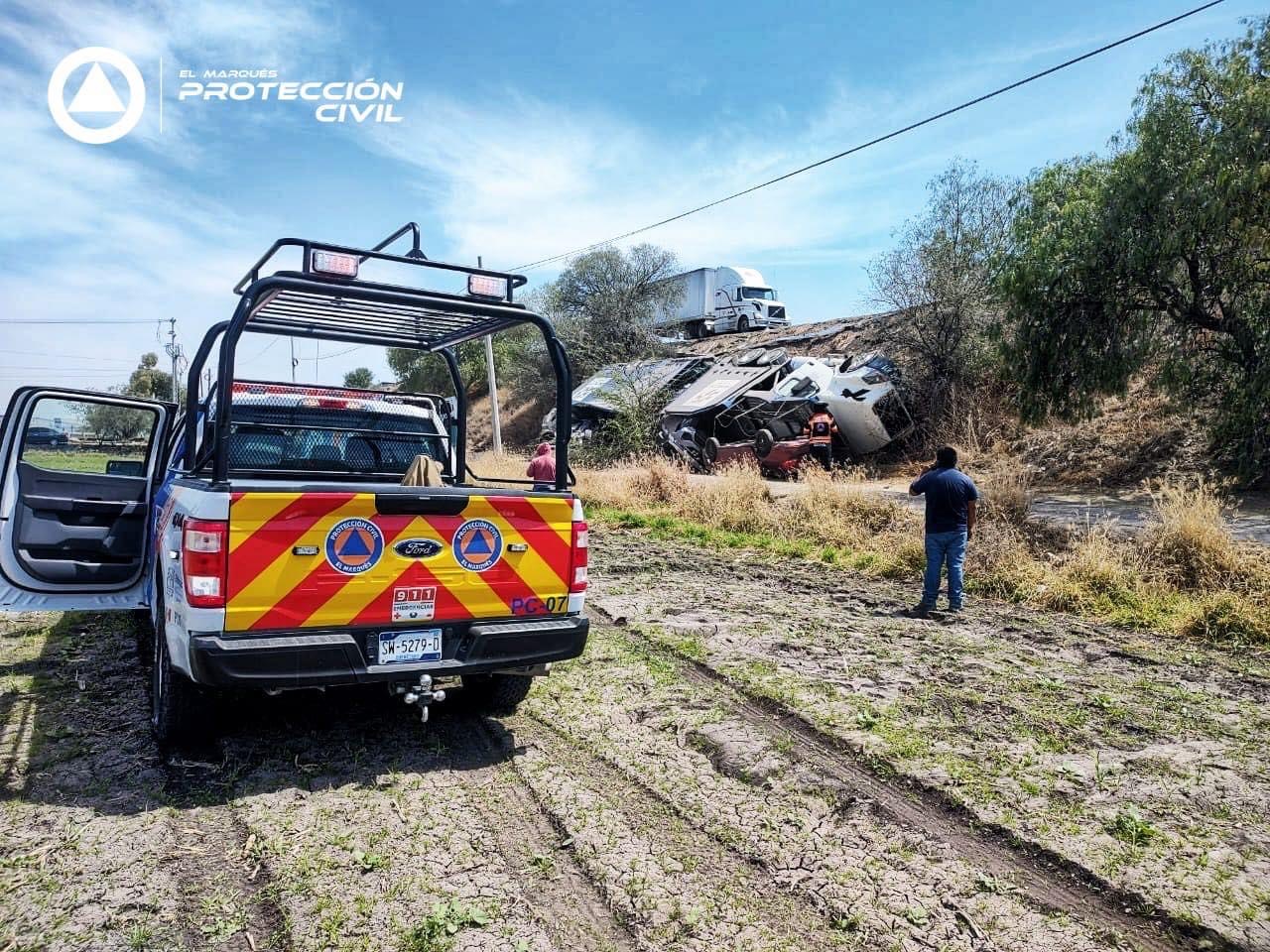 Personal de Protección Civil Municipal de El Marqués, fueron quienes acudieron al lugar para brindar los primeros auxilios y tras la valoración del operador y único ocupante, determinaron que no presentaba heridas graves ni ameritaba traslado a un hospital.