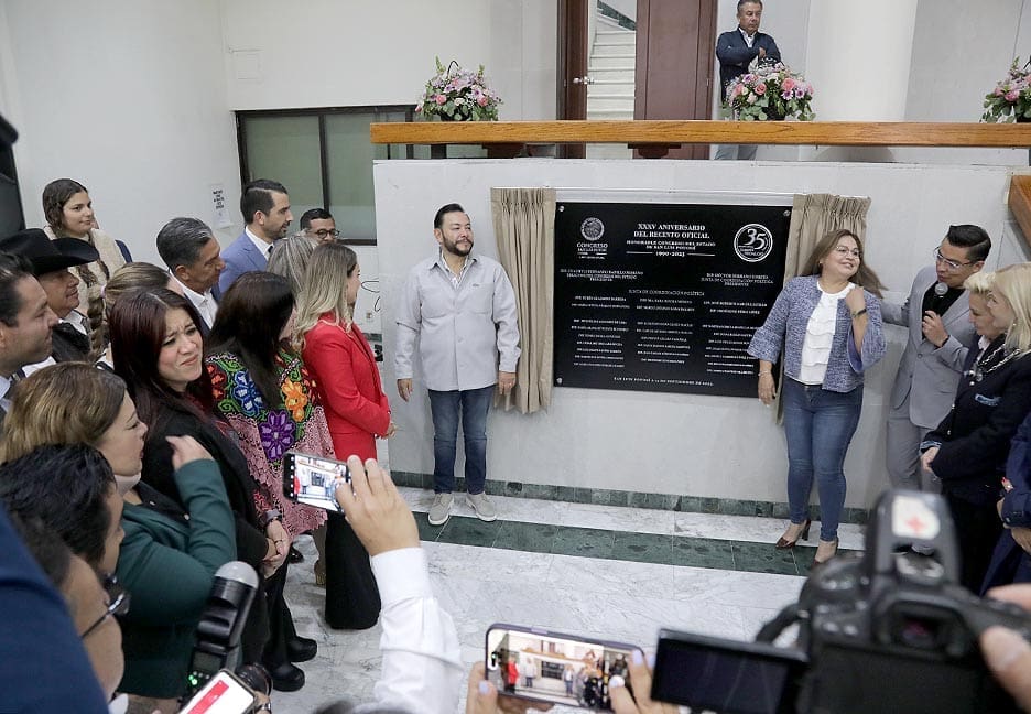 Las y los integrantes de la LXIV Legislatura develaron este día una placa conmemorativa por el XXXV Aniversario del Recinto Oficial del Congreso del Estado, en su edificio de Jardín Hidalgo 19.