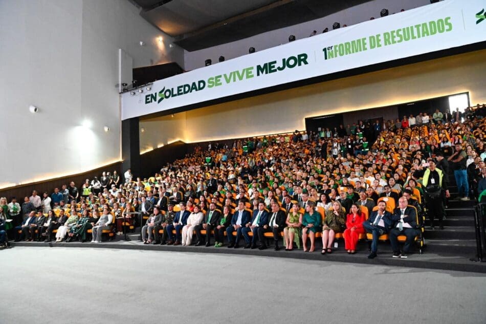 En un ambiente festivo, entre porras, aplausos y gran asistencia en el Teatro y Centro Cultural “Doroteo Arango”, el Gobernador del Estado, Ricardo Gallardo Cardona refrendó su respaldo absoluto al Alcalde Juan Manuel Navarro Muñiz, al afirmar: “Nuestro movimiento no podría estar en mejores manos aquí en Soledad”.