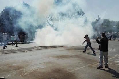 Mientras los policías de Morelia seguían la noche del lunes de guardia tras las vallas metálicas, un camarero de una taquería pegada al Palacio de Gobierno recuerda que el domingo llegaron como “más de 100 personas” a eso de las cuatro de la tarde. “Al principio parecían pacíficos pero se empezaron a calentar los ánimos”, cuenta el joven de 21 años y estudiante de Derecho. “Estuvo raro porque la policía tardó en llegar y ahí ya sí se armó el desmadre con bolas de goma y gas lacrimógeno”.