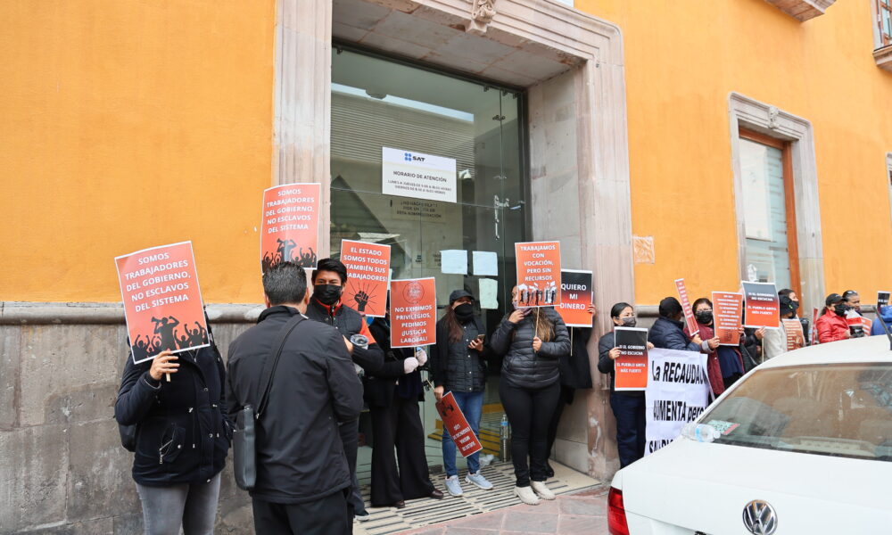 Al igual que en el resto del país, este martes trabajadores del Servicio de Administración Tributaria en Querétaro realizaron una huelga a las afueras de las instalaciones de dicha institución, ubicadas en la calle Ignacio Allende, Centro Histórico de la ciudad, para exigir un incremento salarial.