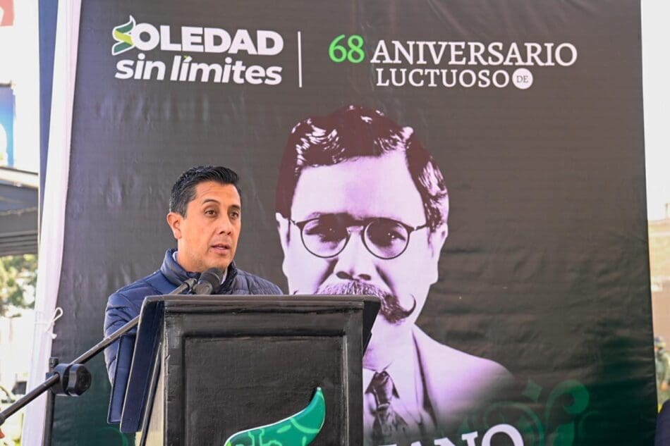 El Ayuntamiento de Soledad conmemoró el 68 aniversario luctuoso del profesor Graciano Sánchez Romo, líder agrarista, maestro y político potosino, cuya lucha social dejó un legado de defensa, justicia e igualdad de derechos para las y los campesinos; el acto solemne se realizó en el Monumento al Líder Agrario, ubicado en la entrada principal del municipio, y se reafirmó un trabajo de gobierno cercano a su gente y comprometido con las causas sociales, tal como lo impulsa el Alcalde Juan Manuel Navarro Muñiz.