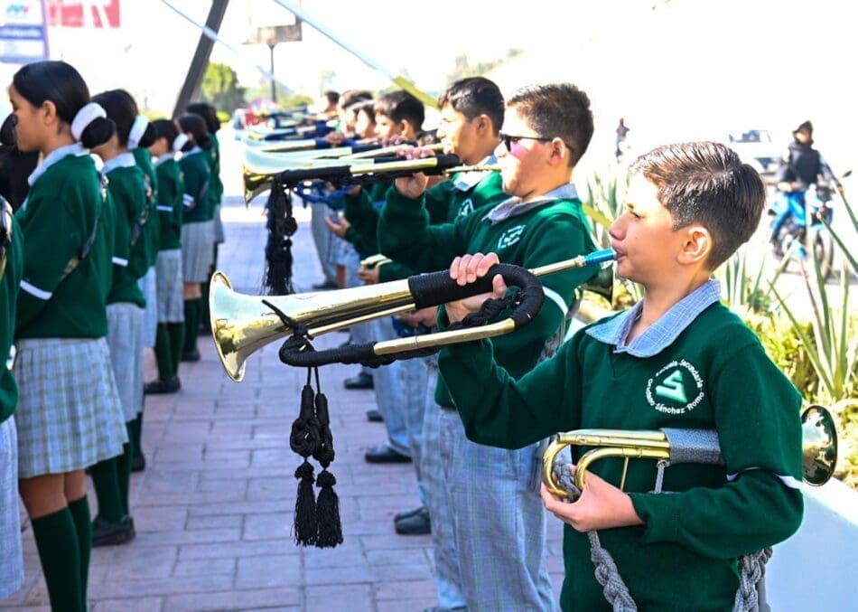 El evento fue encabezado por el Secretario General del Ayuntamiento, Benjamín Pérez Álvarez, en representación del presidente municipal, quien estuvo acompañado por el oficial mayor Luis Gerardo Ruiz Ibarra, la directora de Educación y Acción Cívica Municipal, Velia Guadalupe Castro Granja, y el director de la Guardia Civil Municipal, Aristarco Serna Piña, además de autoridades educativas, agrarias y militares, durante la ceremonia se rindió una guardia de honor, con el toque solemne de la banda de guerra, y se contó con la participación de alumnas y alumnos de la Secundaria Graciano Sánchez.