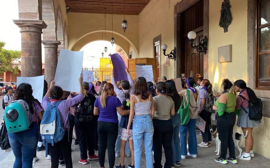 Las jóvenes finalizaron su manifestación pacífica en los portales de Presidencia donde se sentaron en círculo para platicar sus experiencias de acoso o dar a conocer la historia de algún familiar o amiga desaparecida.
