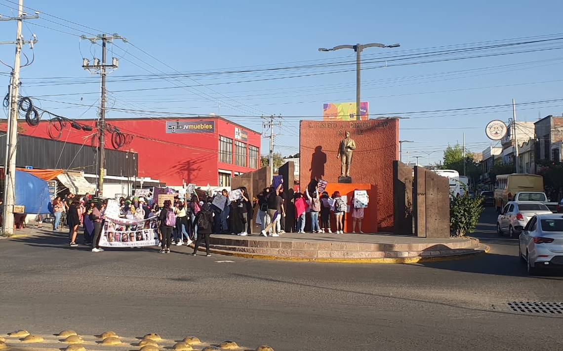 A partir de las 16:30 los contingentes de mujeres comenzaron a avanzar sobre la Av. Río Moctezuma, gritando consignas y levantando sus pancartas. Llegaron hasta Av. Paseo Central, tomaron Av. Juárez y en el monumento a Benito Juárez, en las inmediaciones del mercado, el contingente se detuvo por unos minutos para pegar sobre la base de esta escultura algunos mensajes en apoyo a mujeres víctimas de la violencia.