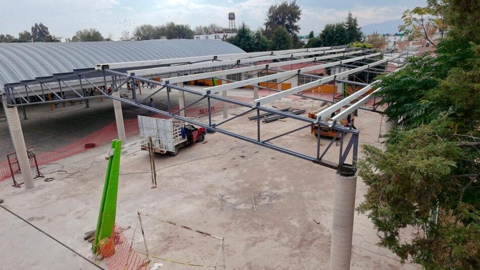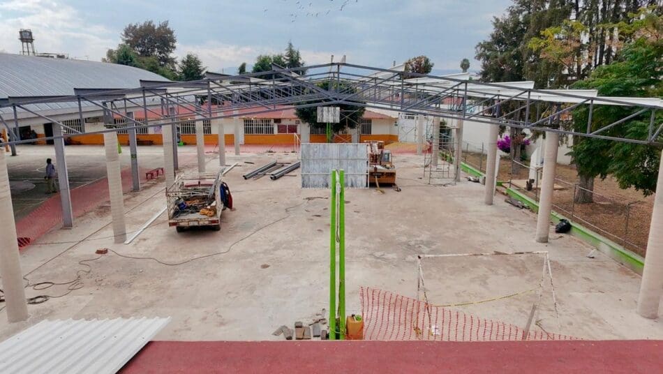 Jorge Grimaldo Limón, director de Infraestructura Municipal, informó que la intervención presenta entre un 65 y 70 por ciento de avance; detalló que el Instituto Estatal de Infraestructura Física y Educativa (IEIFE) ya concluyó la colocación de cabrillas, columnas y zapatas, y actualmente trabaja en la montería que sostendrá la lámina, proceso previo a la instalación de la cubierta y a los acabados finales. “Falta pintura, terminar la montería, colocar la lámina y pintar las bajadas pluviales; ya es muy poco”, explicó al confirmar el progreso constante de una obra esperada por la comunidad educativa.