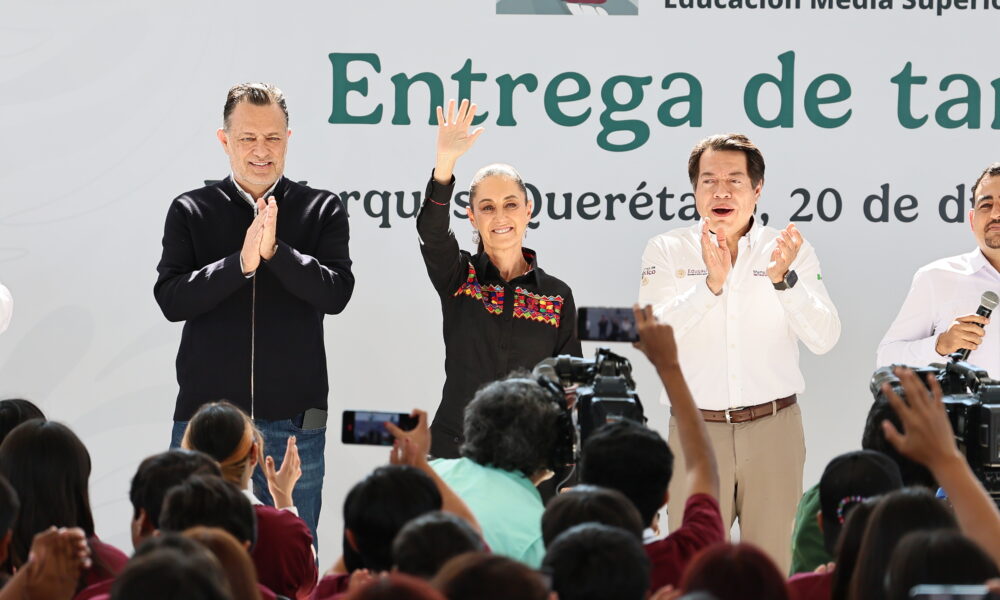 La presidenta de México, Claudia Sheinbaum Pardo, encabezó la entrega de la Beca Universal “Benito Juárez para la Educación Media Superior” en las instalaciones del nuevo Centro de Bachillerato Tecnológico industrial y de servicios (CBTis) No. 304, ubicado en el municipio de El Marqués.