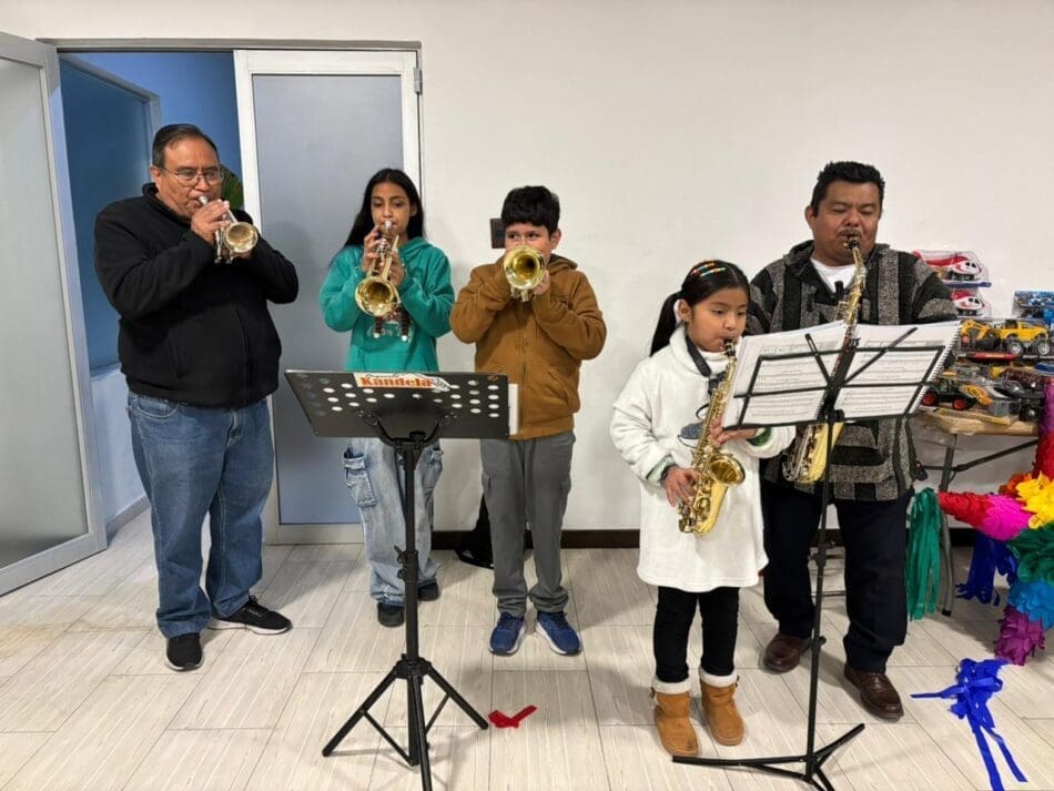 Liderados por el director de la institución, Sergio Tenorio Castillo, y durante la jornada, un grupo de estudiantes y profesores de la Escuela Municipal de Música, deleitaron al público con piezas navideñas a través de instrumentos de viento; se repartieron los tradicionales tamales y bebidas de la temporada, además de romper varias piñatas.