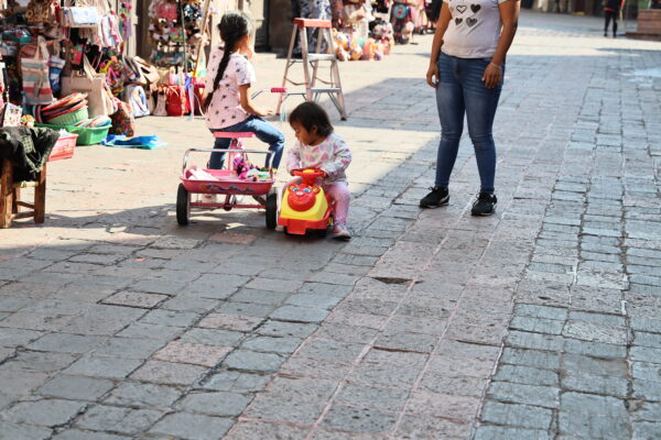 Espacios como la Alameda Hidalgo se convirtieron en puntos de encuentro familiar, donde risas, juegos y colores marcaron el ambiente desde las primeras horas del martes, con niñas y niños andando en bicicletas y patinetas, corriendo tras pelotas o concentrados en el manejo de carritos a control remoto, mientras otros más peinando muñecas.