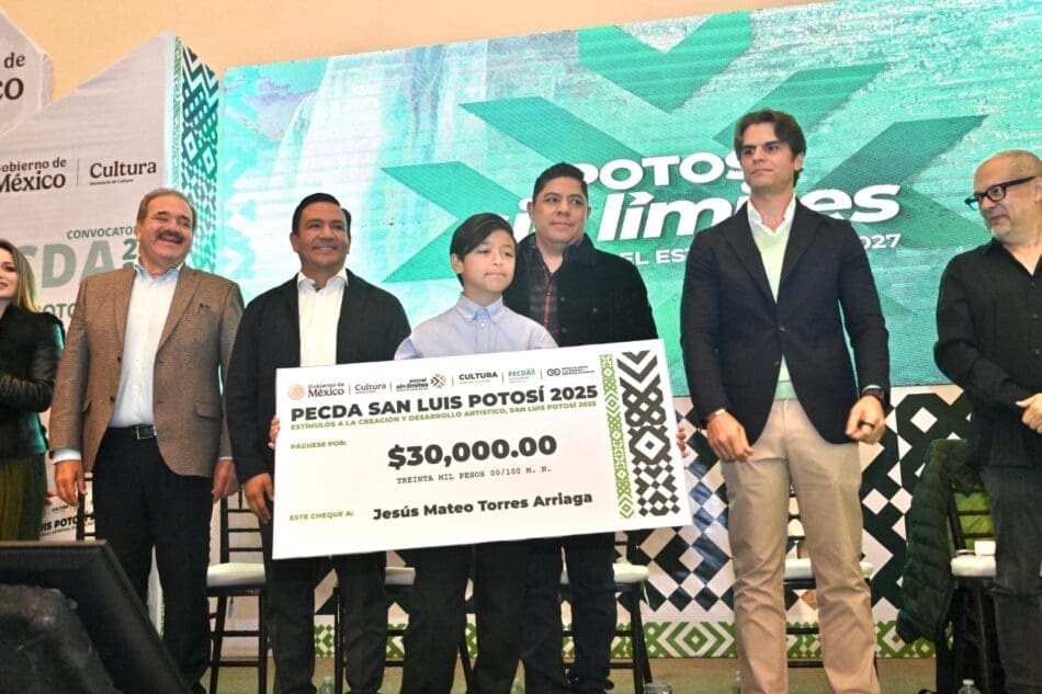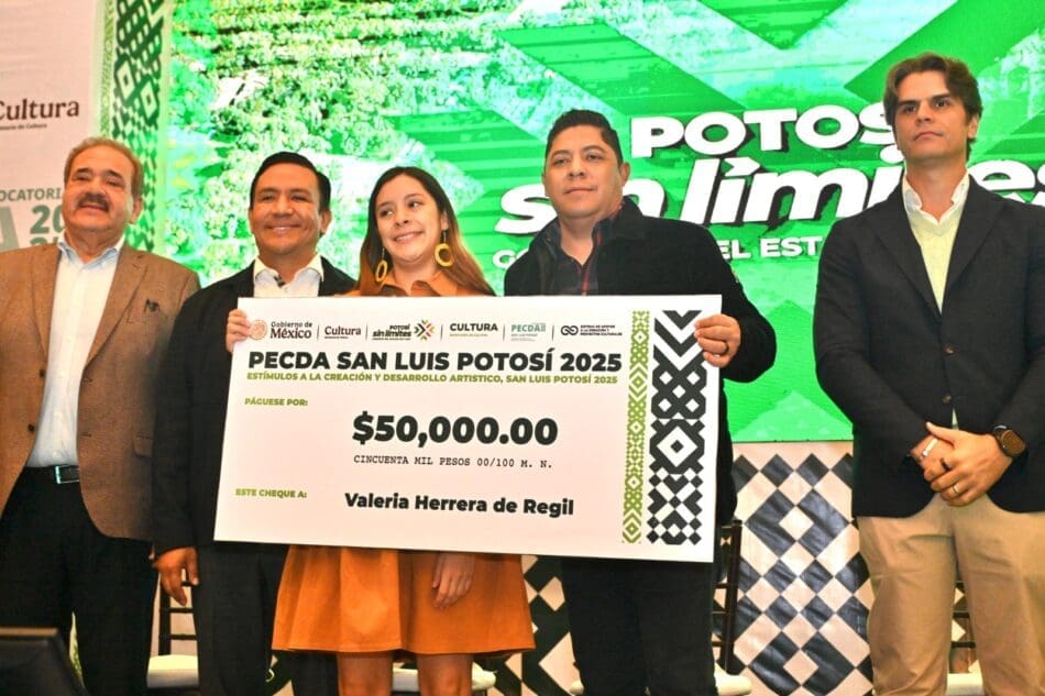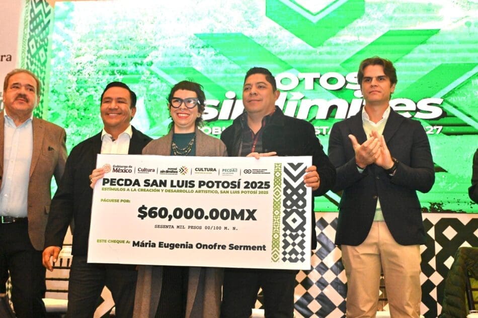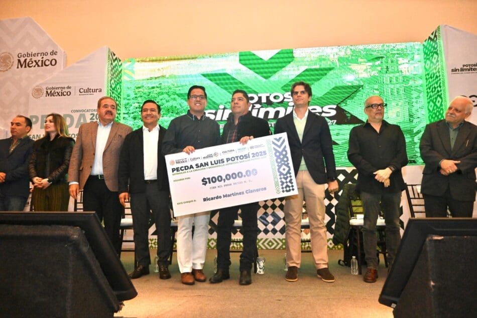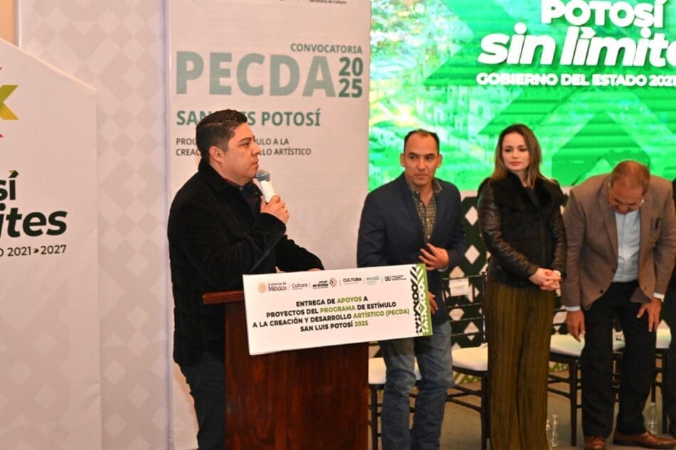 Al entregar los estímulos económicos y reconocimientos del Programa de Estímulos a la Creación y Desarrollo Artístico (PECDA) 2025, que este año aumentó el número de beneficiarios a 67 artistas con una inversión conjunta de 4 millones 150 mil pesos, el Gobernador de San Luis Potosí Ricardo Gallardo Cardona refrendó el compromiso de fortalecer el desarrollo artístico y cultural en el Estado.