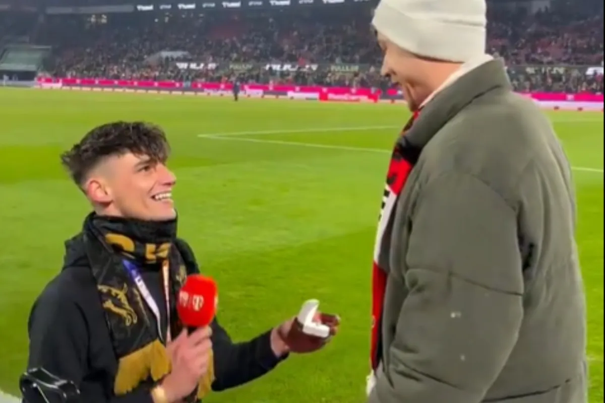El alemn Pascal Kaiser vivi su momento de gloria hace 10 das cuando pidi matrimonio a su novio Moritz justo antes del partido de la Bundesliga entre el Colonia y el Wolfsburgo. Los 50.000 espectadores del RheinEnergieStadion vieron al joven rbitro amateur hincar la rodilla y con un micrfono en la mano declararse a su novio a la vez que le ofreca el anillo de compromiso.