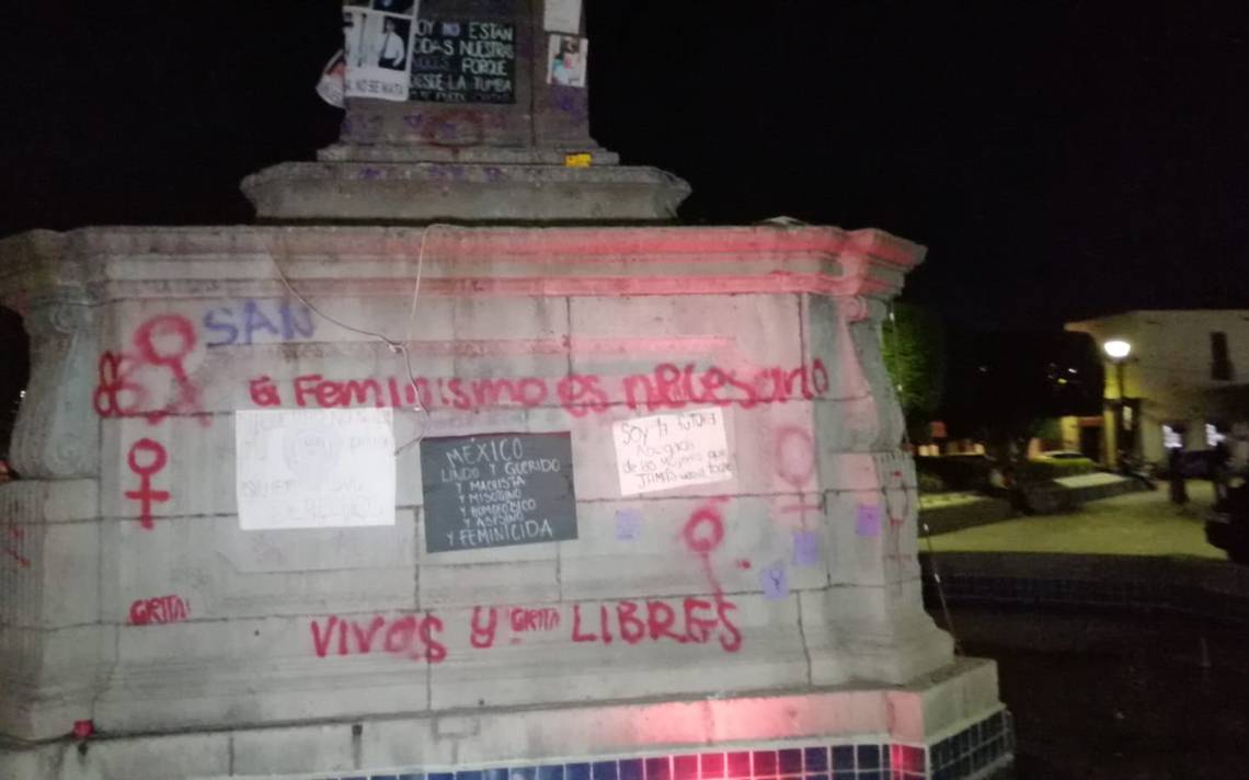 Luego de la marcha de mujeres para conmemorar este 8 de marzo en San Juan del Río, decenas de pintas y mensajes quedaron plasmados sobre las inmediaciones de esta zona en el centro de la ciudad.