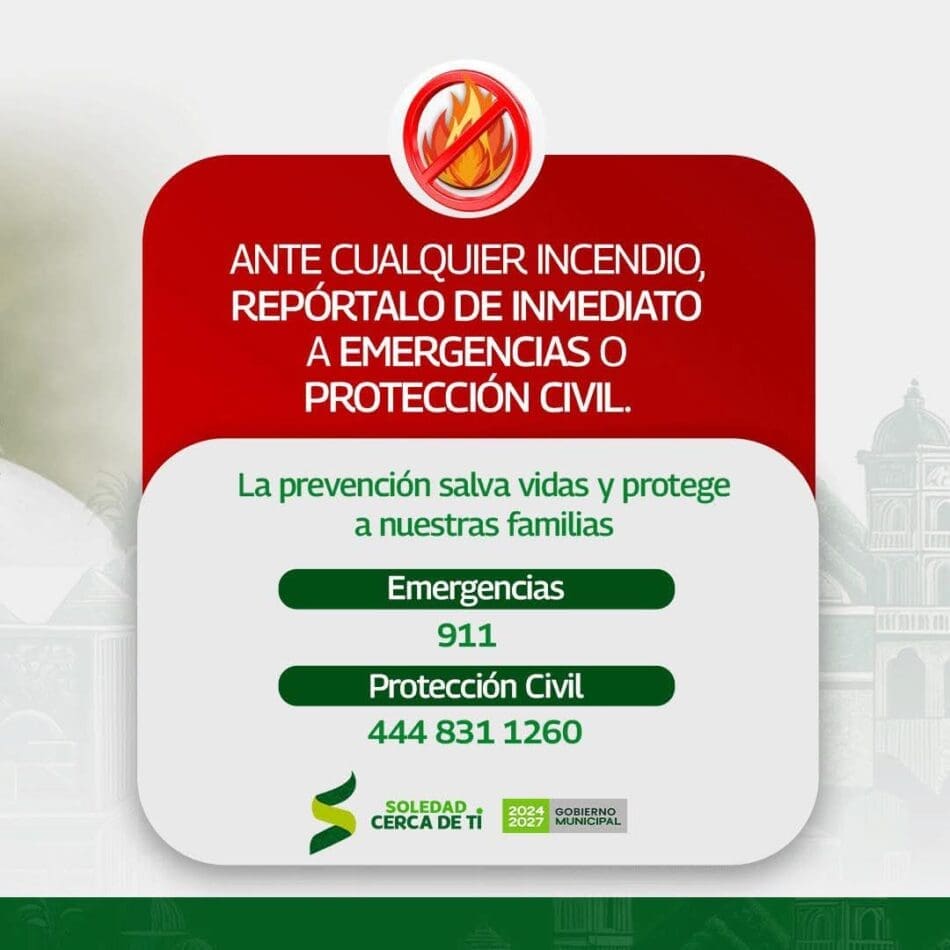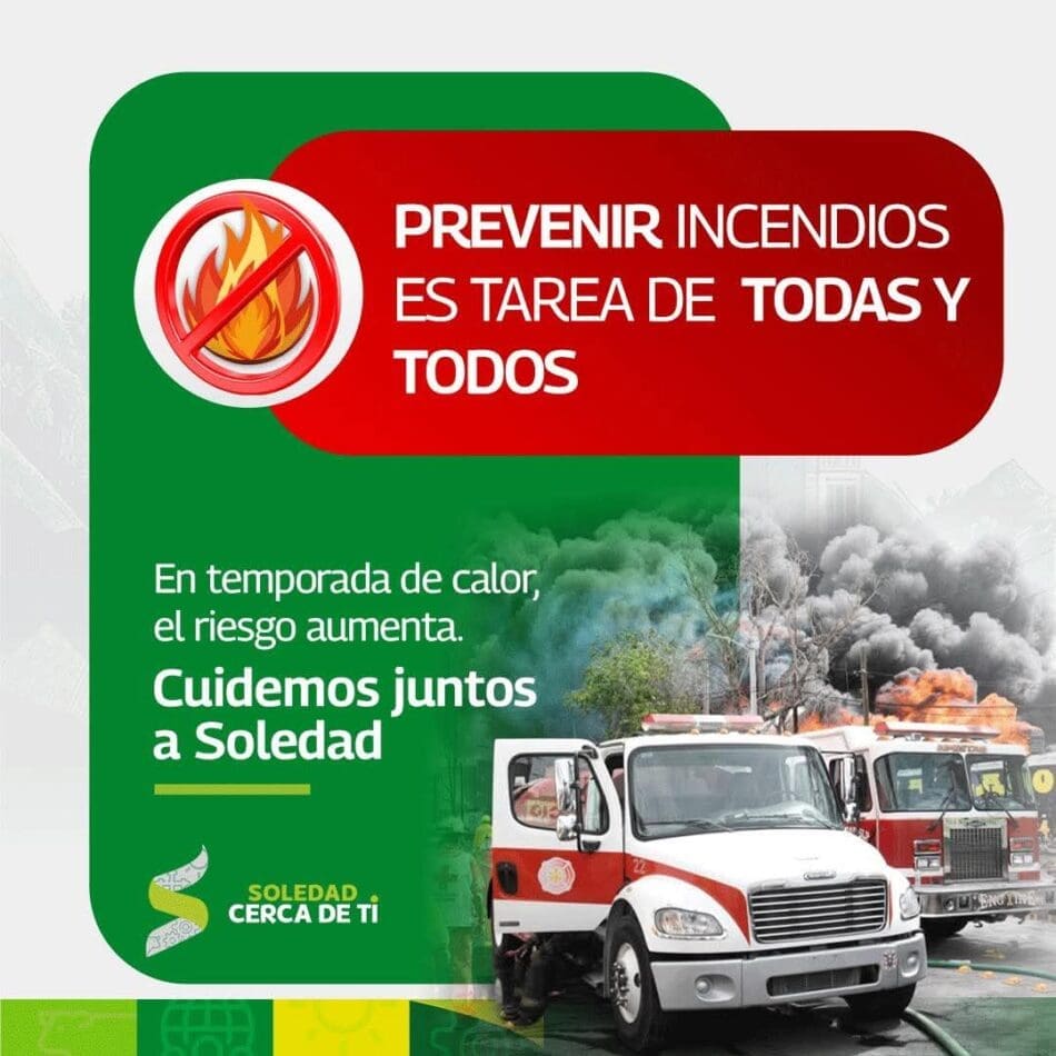 El Alcalde de Soledad de Graciano Sánchez, Juan Manuel Navarro Muñiz hizo un llamado firme a la ciudadanía para evitar la quema clandestina de basura y cualquier acción que pueda provocar incendios, al señalar que estas prácticas ponen en riesgo a las familias y generan la movilización de recursos materiales y humanos indispensables para la atención de otras necesidades prioritarias del municipio.