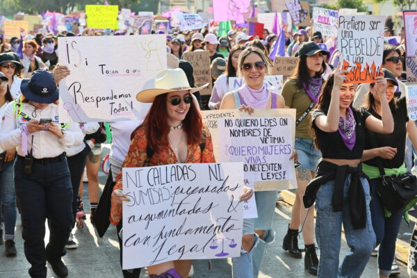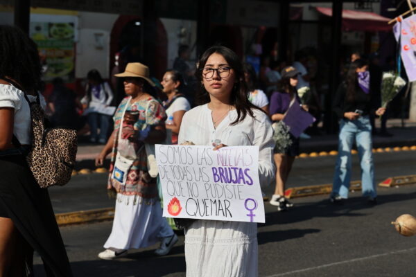 Fue así como desde niñas hasta mujeres de la tercera edad integraron las diferentes movilizaciones, vestidas con alguna prenda morada, así como con los distintivos pañuelos verdes y morados atados al cuello, en las muñecas o en la cabeza. Pero sobre todo con pancartas en mano que buscaban visibilizar las demandas de miles de mujeres, casos de violencia compartidos por alguna amiga o integrante de su familia, mensajes de acompañamiento o incluso historias personales.