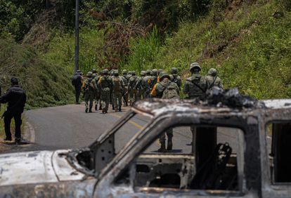 México está en plena espiral de violencia. La guerra entre grupos criminales no cesa en Michoacán, dejando a su paso una estela de asesinatos, balaceras y bloqueos por el control del tráfico de drogas en la costa del Pacífico. Las comunidades indígenas de Chiapas, en el sur del país, están a merced de extorsiones, amenazas y saqueos, mientras la formación de grupos civiles de autodefensa no ha frenado el éxodo de miles de personas para huir del conflicto. El hartazgo también ha pasado factura en Oaxaca, donde 22 elementos de la Guardia Nacional fueron retenidos por pobladores durante tres días. En Tamaulipas, en la frontera con Estados Unidos, fue hallada esta semana una narcofosa con los restos de al menos 21 personas, como las cuatro fosas comunes que ya se encontraron en Quintana Roo, la joya turística del Caribe mexicano. Todo, esta semana. El presidente, Andrés Manuel López Obrador, ha atraído la atención en su conferencia de prensa de este viernes sobre la situación que se vive en el central Estado de Guanajuato y ha exigido a las autoridades locales que hagan algo para combatir la escalada de homicidios violentos. Pero las noticias sobre el último pico que ha teñido de rojo al país llegan desde los cuatro puntos cardinales.